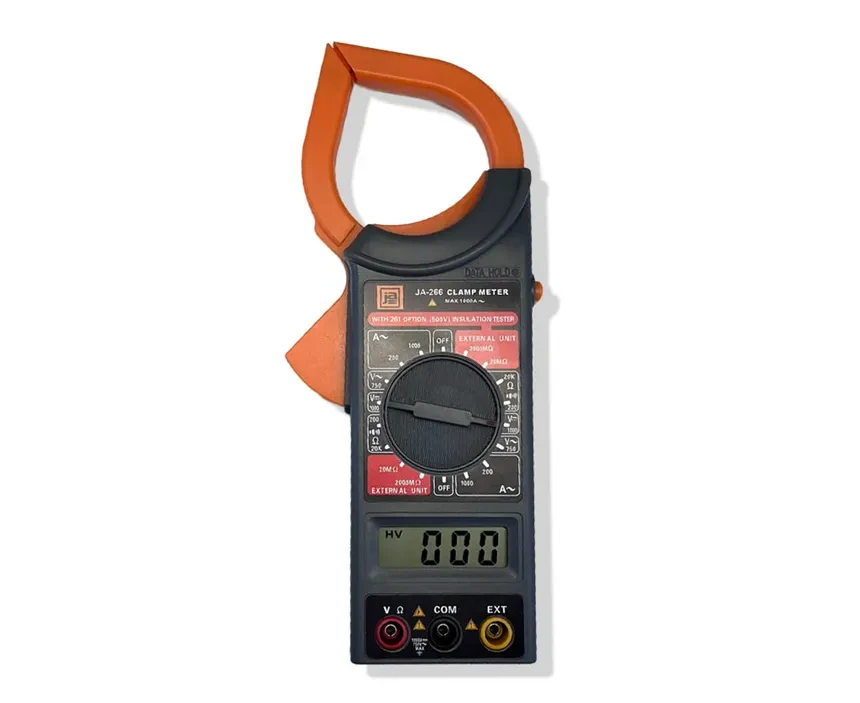 La Pinza Amperométrica JA-266 es la herramienta indispensable para el electricista profesional y el técnico en refrigeración. Gracias a su diseño de pinza de gran apertura, permite medir intensidades de corriente alterna de hasta 1000A de forma segura, sin necesidad de interrumpir el circuito ni pelar cables.